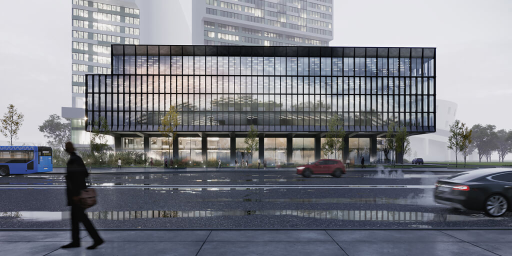 Проект здания создан архитектурным бюро Kleinewelt Architekten и воплощает передовые принципы девелопмента. В центре архитектурного замысла — амфитеатр на более чем 100 человек и 19-метровая монолитная лестница, придающая уникальный характер и расширяющая возможности бизнес-центра для проведения деловых и культурных мероприятий. На первом этаже расположены переговорные, ресторан, зоны для курьеров и кофе-пойнты. Каждый рабочий этаж оснащен зонами отдыха, кофе-пойнтами, душевыми и гардеробными, а эксплуатируемая кровля позволяет сотрудникам комфортно отдыхать на свежем воздухе в теплое время года.