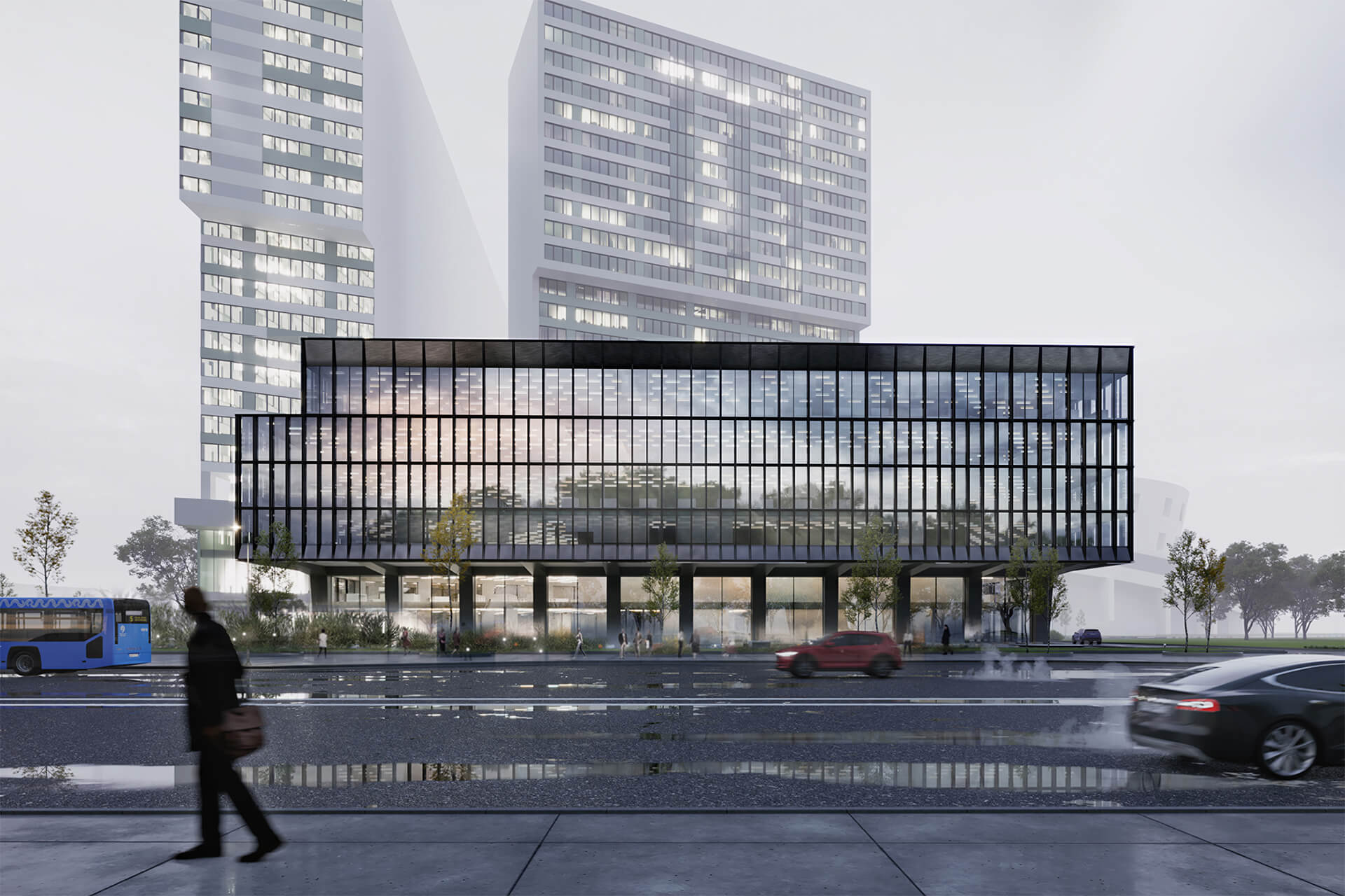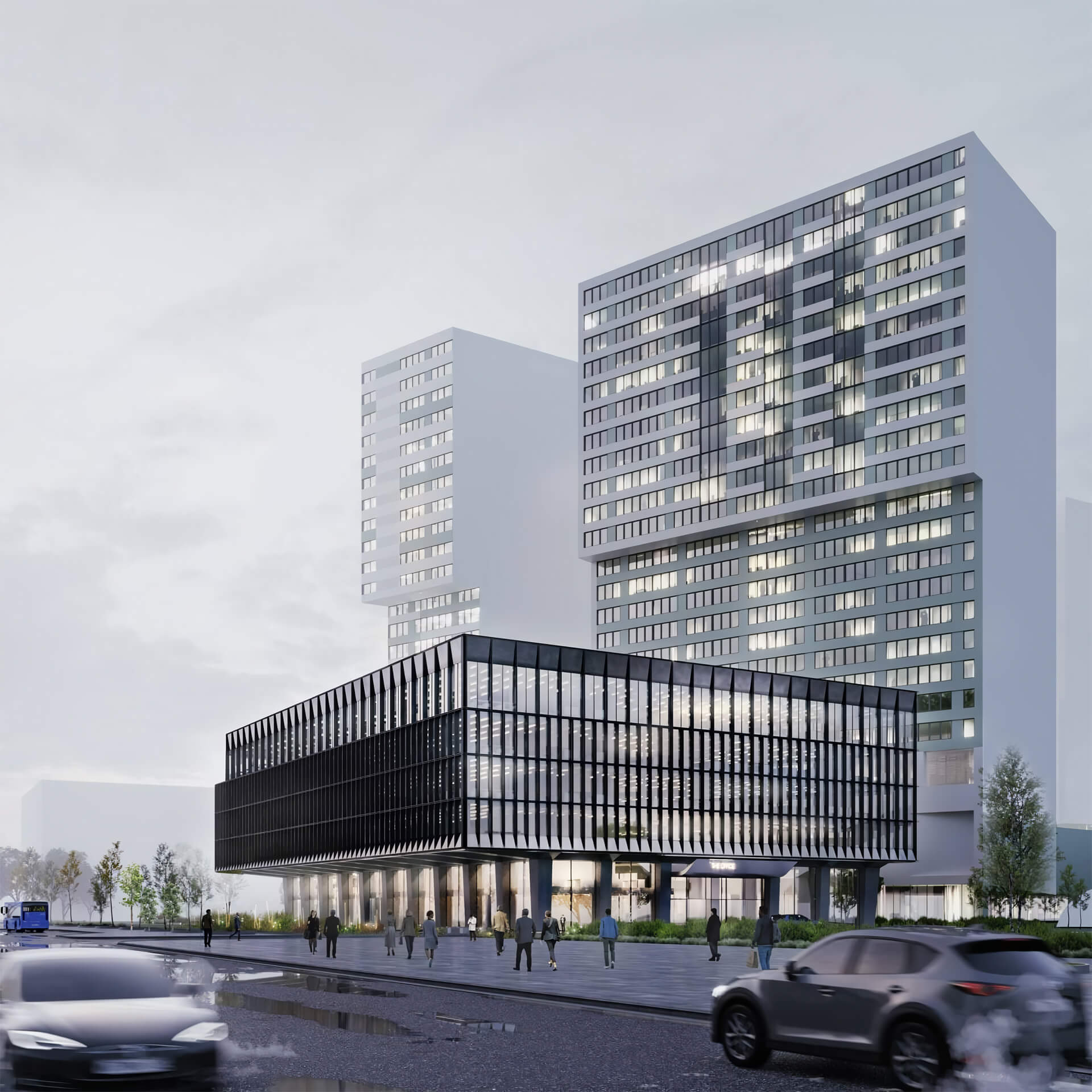 Проект здания создан архитектурным бюро Kleinewelt Architekten и воплощает передовые принципы девелопмента. В центре архитектурного замысла — амфитеатр на более чем 100 человек и 19-метровая монолитная лестница, придающая уникальный характер и расширяющая возможности бизнес-центра для проведения деловых и культурных мероприятий. На первом этаже расположены переговорные, ресторан, зоны для курьеров и кофе-пойнты. Каждый рабочий этаж оснащен зонами отдыха, кофе-пойнтами, душевыми и гардеробными, а эксплуатируемая кровля позволяет сотрудникам комфортно отдыхать на свежем воздухе в теплое время года.